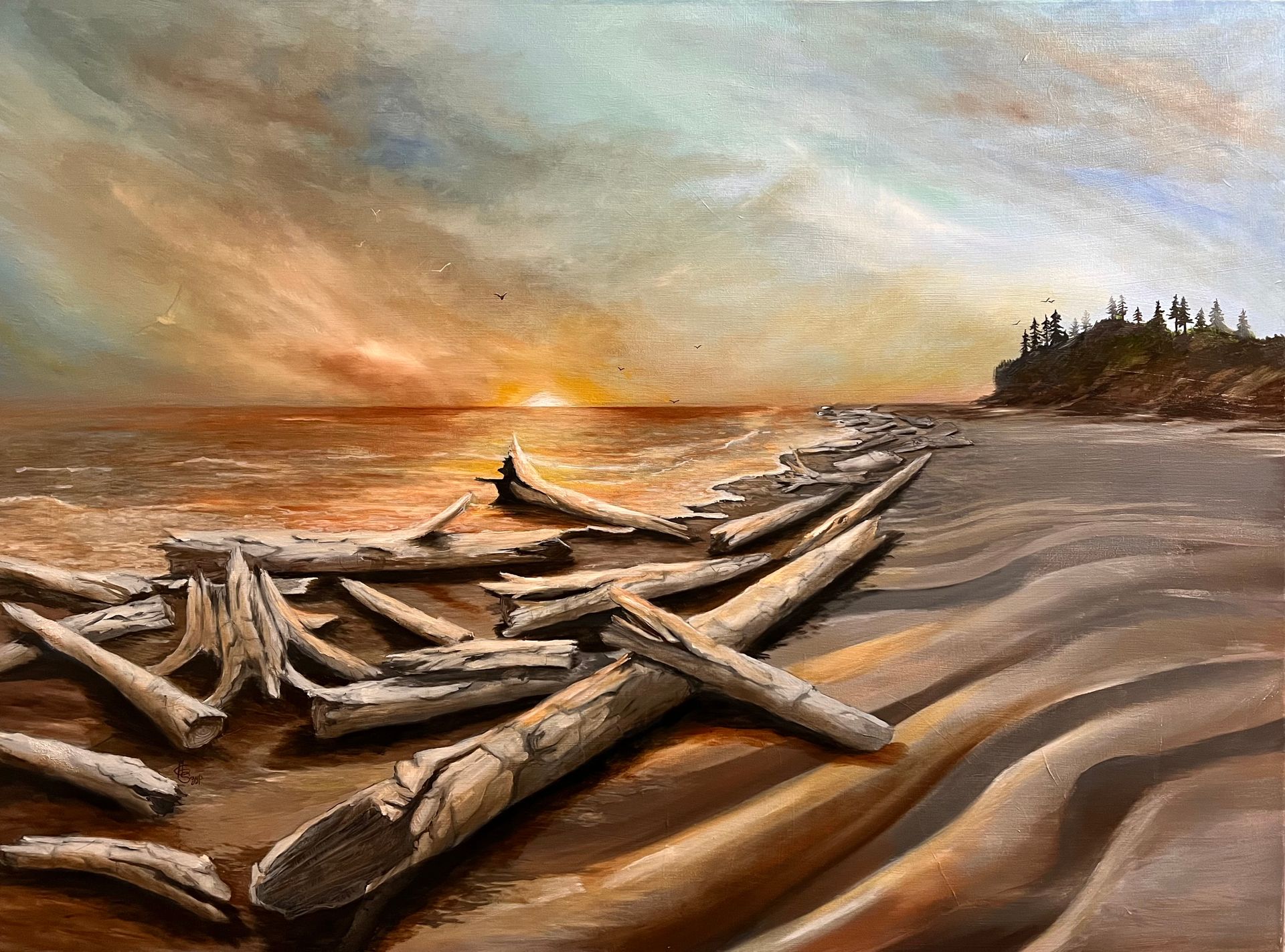 Surrounded by the incredible beaches and foggy forests, her unique perspective on her work tends to tilt towards romanticized reality, dreamlike images of real places that invite you to travel without even moving. She approaches her works with the intention to elate each viewer to feel the sand and rocks under their feet, smell the salty ocean breeze, and hear the birds above, as the tips of trees dance in the wind and the water splashes the shores.